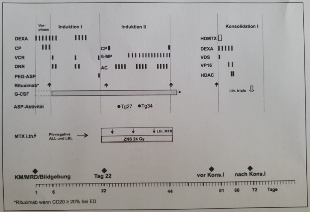 Die Krebszellen kann man nur bei der Zellteilung erwischen, einsame schlummerde werden nicht von den guten Zytostatika zerstört. Daher greifen die Chemos auf unterschiedliche Weise bei der Teilung an. Neben dem Cyclophosmamid gibts in der Induktion 2 neuen Stoff: Cytarabin, Mercaptopurin und Methotrextat. .