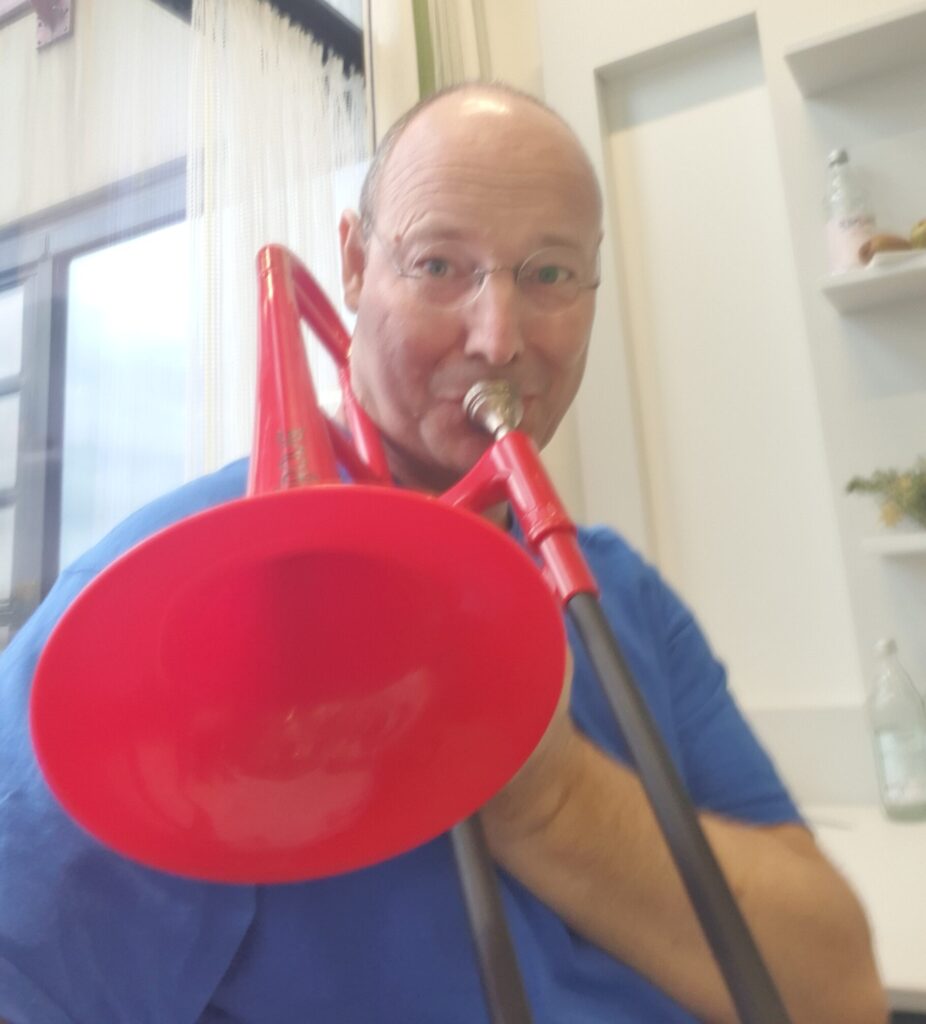 Der Bettnachbar war unterwegs und ich nutze die Zeit nach meinem Zwischtief für hohe Töne an der Alt P-Bone meines Sohnes und wildere auf unbekannten Positionen: C-Dur Feeling unter den Zug kriegen! Erste Impressionen gibt es auch schon. Für die Pros man beachte das überdimensionierte Mundstück mit nachträglich abgerundetem Innenrand für mehr Flexibilität und sanfteren Klang. Der Klang der P-Bone ist OK aber Bill Watrous Slide Vibrato Feeling will bei dem kratzigen Zug nich aufkommen. Den Zugschuh aus Messing habe ich mit 800 Papier entgratet, was das Kratzen etwas reduzierte. Besseres Gleiten gelang mir nur durch Wasser, Silikonfett ist zu zäh. Good enough for jazz. Kommt gleich nach C-Dur 😉