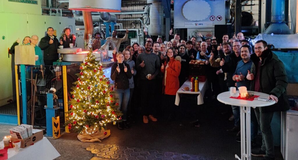 Die lieben Kollegen von GI und KKS senden mir herzliche Weihnachtsgrüße mit guter Laune von der Weihnachtsfeier. Ein leuchtender Tannebaum vor unserem wärmenden und glühenden Induction Furnace: Ein Draum, wie ein Baum 🙂 Herzlichen Dank für Eure lieben Grüße und ein frohes Fest wünscht Euch Björn.