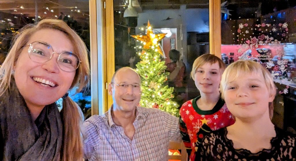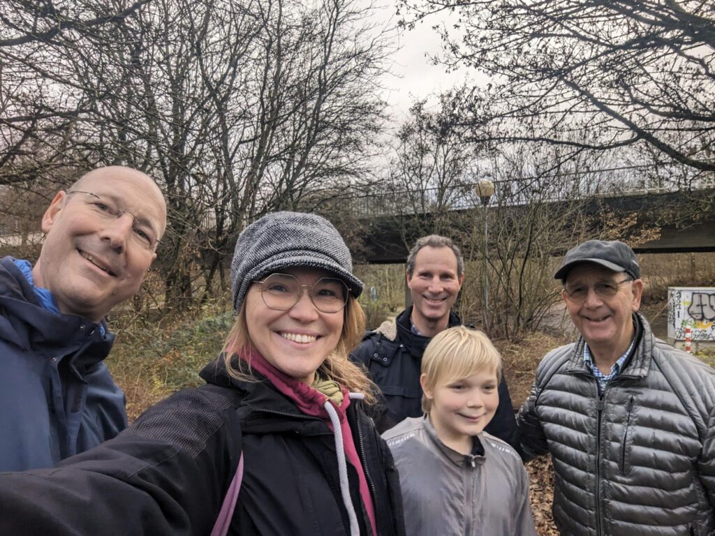 Die gute Family darf nicht fehlen. Bei frischer Luft am 16.12.2023 ganz legal auf dem Uniklinik Gelände dürfen wieder Bilder gemacht werden und da strahlen sie alle, mein Vater, mein Bruder, mein kleiner Bub und die gute Biene 🙂 Man beachte die fesche Frisur des unbekannten BBonisten.