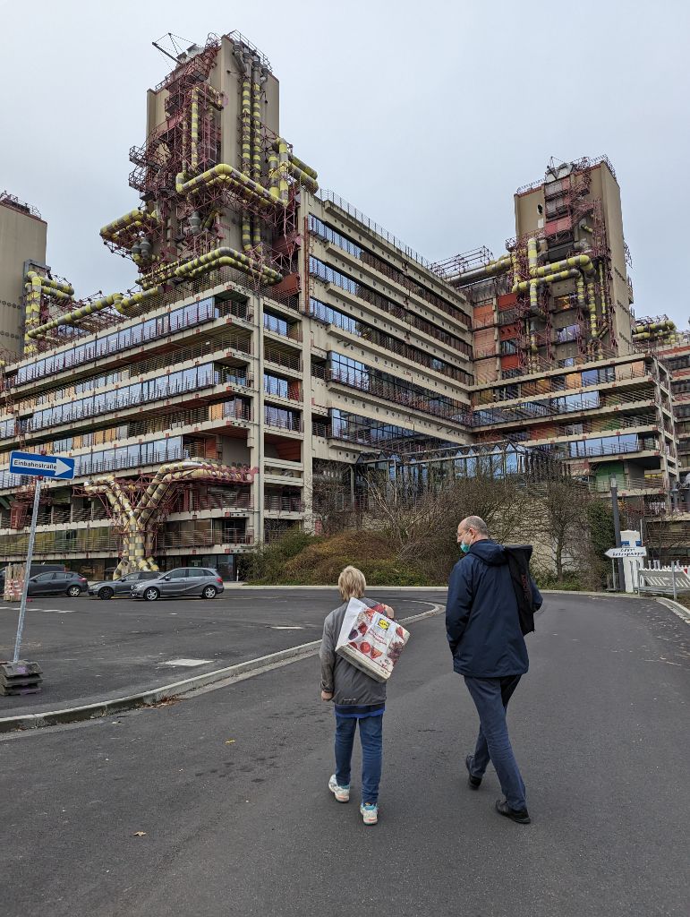 Wer erinnert sich nicht gerne an die herzzerreißenden Sprüche unserer Politisierenden zum neuen Normal während und after Corona. Man weiß nicht ob mehr dahinter steckt oder ob von denen da oben damit nur die regelmäßige Steurgeldüberweisung an den industriell-medizinischen Komplex gemeint ist auf den mein Sohn und ich uns einsam im Bild zubewegen. Ja, nach fast einem Monat ist die denkmalwürdige Uniklinik mein neues Normal geworden. Im Bild deutlich zu sehen, es handelt sich um eine Einbahnstraße, rechts hinter dem 2. Aufzugschacht liegt irgendwo im 5. Stock mein derzeitiges Zimmer, was aber öfter mal wechselt. Heute wird die heiße Phase der Induktion 2 eingeläutet. Von da an gibt’s fast ohne Unterbrechung jeden Tag Cytarabin oder / und Mercaptopurin mit all den blumig umschriebenen Nebenwirkungen. Solange es mir gut geht, macht sich Begierde breit nach Abwechslung und neuen Herausforderungen.